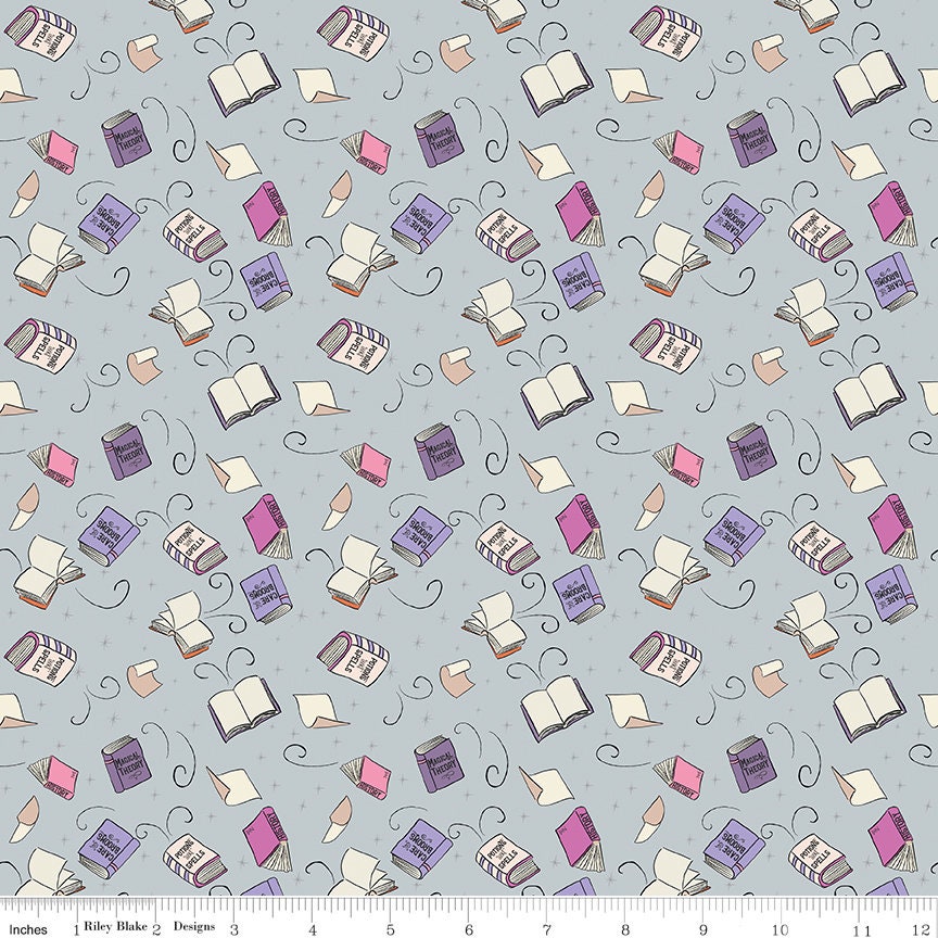 Item Description: Spooky Schoolhouse by Melissa Mortenson for Riley Blake Designs is great for apparel, blankets, quilts and quilt backs. This print features tossed books on a background of stars and includes elements of silver sparkle.
