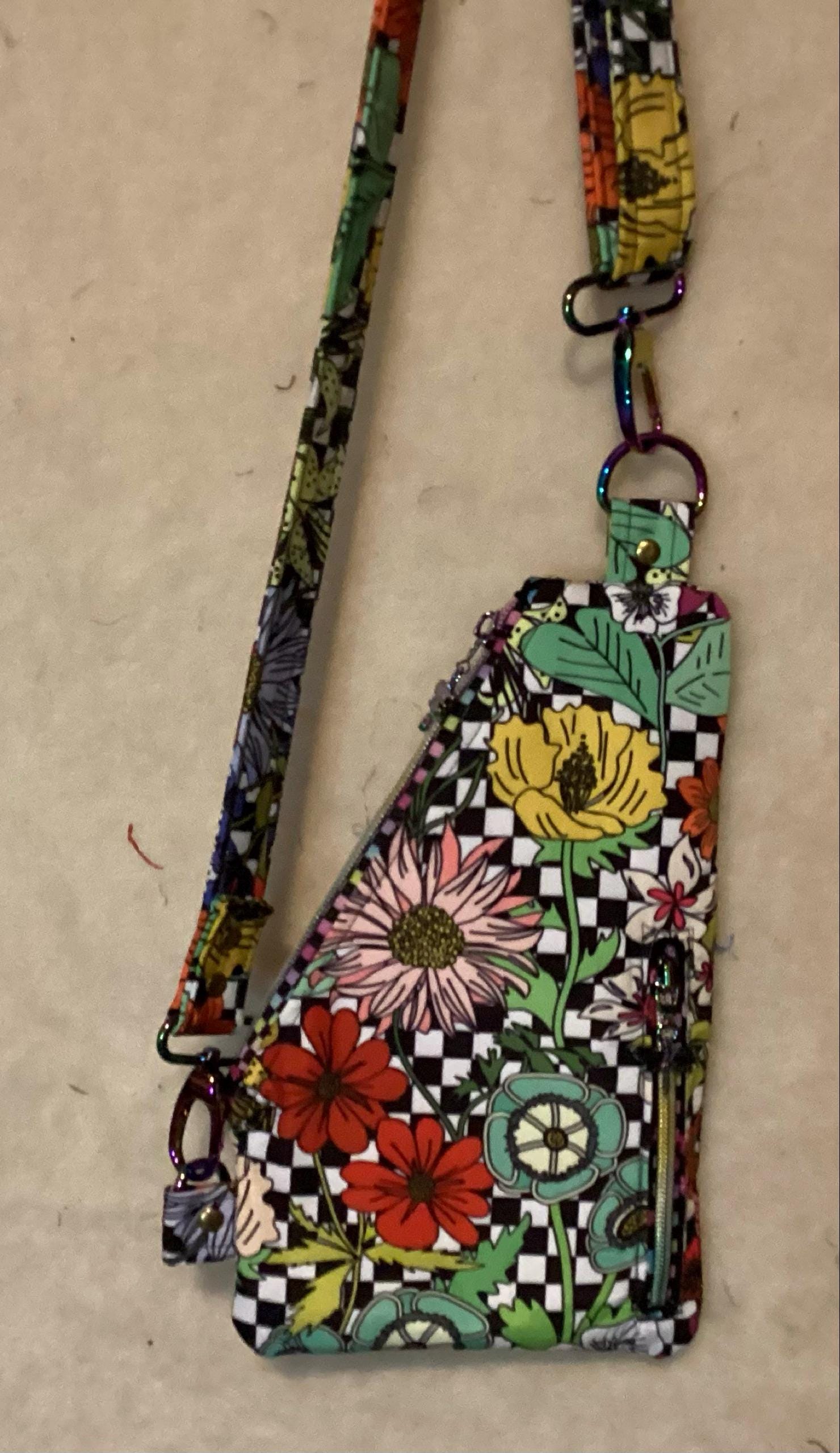 This is a fantastic hands-free bag, with zip pocket, card slots/slip pocket combo, and a clip-on strap, to make it easy to wear. If you're unable to lift bags over your head, simply unclip the strap and reclip around you. If you'd like to use webbing instead of making a strap, please cut the webbing to at least 54" (137cm). The Adventurer Sling has finished dimensions of 6" wide x 10" height x 1/2" depth (15.25cm x 25.5cm x 1.2cm).